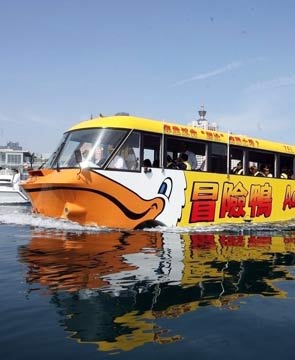 简介:水陆两栖公共汽车,也称水陆两栖巴士,既能在陆地行驶,也能在水上行驶。与普通巴士不同的是,“两栖巴士”外面“裹”了一个“船体”,这样它就能在水中漂浮起来。引采用普通公共汽车的底盘,但是它在底盘的基础上,还拥有一个船体外壳,这种船体外壳使得汽车可以在水中行驶。 目前,在世界范围内,生产水陆两栖巴士的国家有澳大利亚、荷兰。