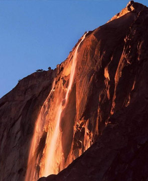 简介:在落日余晖的映照下,2000英尺(约609米)高的瀑布闪着橘红色的光芒,如同火山岩浆沿着山崖喷泻而下,这就是自然奇观之一“火瀑”。